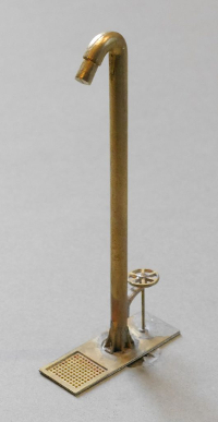 | LNWWC | LNWR Water Crane. This is the type that was controlled by a below ground valve and which were both ground and platform mounted. Sometimes they were mounted straight into the platform without the base being visible and without the drain A split cover gave access to underground located valve.The kit has options to produce either. The column is lost wax cast brass, with etched parts for the base, drain, valve shaft support, etc. section of textured “hose” and instructions. | £10.50