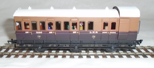 L&Y D10 Brake Third The D10 Brake Thirds were introduced in 1890 and while outwardly similar to the Birdcage Brakes Thirds, were one foot longer at 33′. The extra length was incorporated into the luggage compartment. 23 were dual fitted with vacuum and Westinghouse brakes for through running with the Caledonian Rly and the N.E.R.The kit is etched in brass, with plasticard roof and cast whitemetal detail parts. |