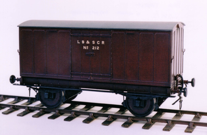 L.B.S.C.R. 4 wheel Luggage Van Similar in design to the Passenger Brake Van, but with two identical sets of luggage compartment doors and no guards compartment, this kit represents a prototype of the same era. A total of 50 were built between 1878 and 1890. Again very little prototype information is available, but this model provides a valuable addition to the range of kits for the early LBSCR modeller.The kit is etched in brass and includes a four wheel compensation system. A pre-formed plasticard roof is supplied and the axleboxes and gas lamp covers are whitemetal. Sprung buffers are included. The comprehensive instructions include the build dates and running number for the prototypes, four pages of assembly drawings and prototype elevations, as well as livery details. |