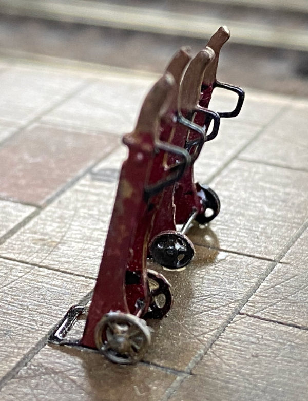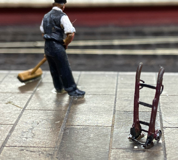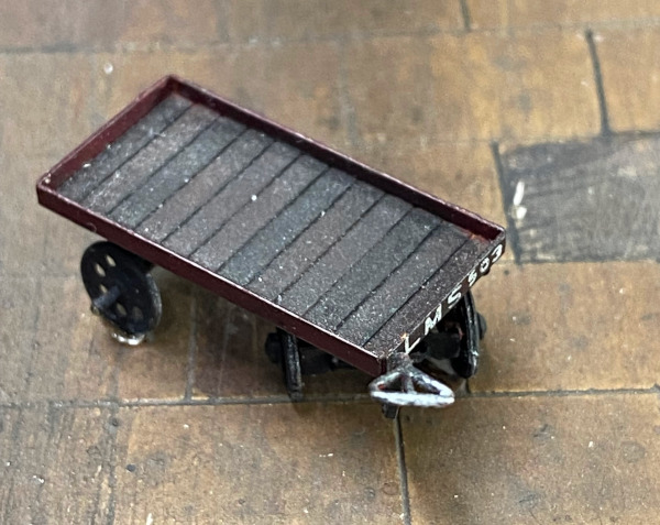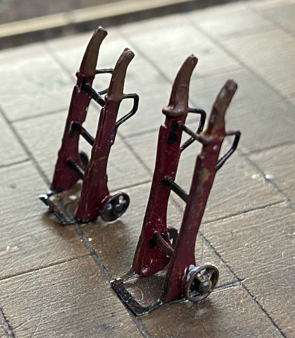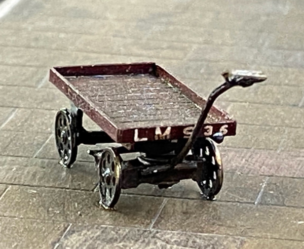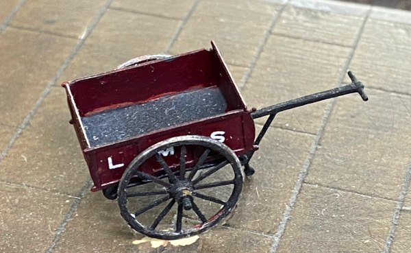 | NERSB | Designed as an NER Platform sack barrow. However, it has since been pointed out to us that they are very similar, if not identical, to those of other companies. Photos shown are LMS as seen on the Liverpool Lime Street layout (courtesy John Holden). Etch is for two sack barrows | £5.50